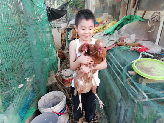 我每天清晨被鸡鸣叫醒(实际上是督促我喂他们早餐),别有一番风味;一旦上楼,母鸡蜂拥而至,迅速围拢过来要吃的;一旦撒食,便各自争抢开来;发现你要离开,又跟踪而来恋恋不舍,有的甚至叼着你的衣角不放你走。他们最爱吃的是新鲜的蔬菜、砸碎的骨头和小米大米。白天鸡舍拾蛋时,心中十分欣慰。看着小孙子津津有味的吃着鸡蛋,或者把鸡蛋赠送亲友邻居后,听到对鸡蛋味道品质的点赞声,我就有一种成就感。