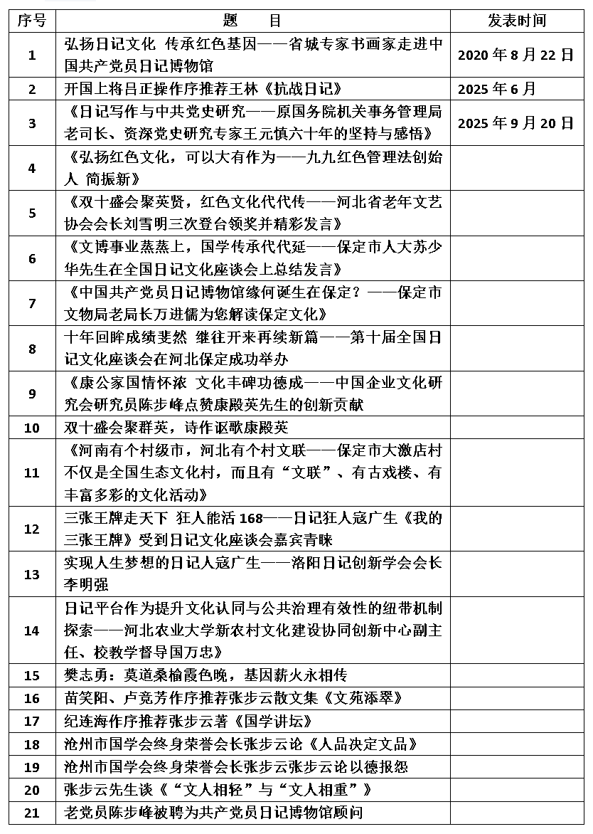 2025年9月20—21日,在历史文化名城保定成功举办了“中国共产党员日记博物馆建馆十周年、河北省国学学会建会十周年暨第十届全国日记文化座谈会”。一百余名专家学者从22个省市自治区缘聚保定,恭贺见证文化盛事,高度评价康殿英先生及创建的中国共产党员日记博物馆建馆的创新贡献,分享学习交流感悟,就更好的发挥博物馆教育交流阵地作用,大力弘扬日记文化提出了许多建设性意见。该会规格高、幅射广、内容丰富、信息量大,有深度、有高度、有祝贺、有捐赠,有建议,有表彰,有报告,有讲座,有展示,有交流,有诗词,有唱腔,可谓高潮迭起、异彩纷呈、火花频出。创新了民间组织文化活动的吉尼斯纪录。足见人们对日记文化的认识之深刻,足见日记博物馆的品牌影响力凝聚力之大和康殿英老先生的人格魅力之高尚和强大的向心力。