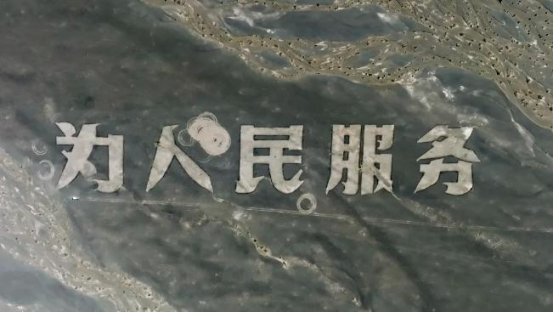 通过“刮除黑石露出碱土”的方法,在戈壁滩用铁锹挖出了,“为人民服务”“只争朝夕”等5处地标大字。