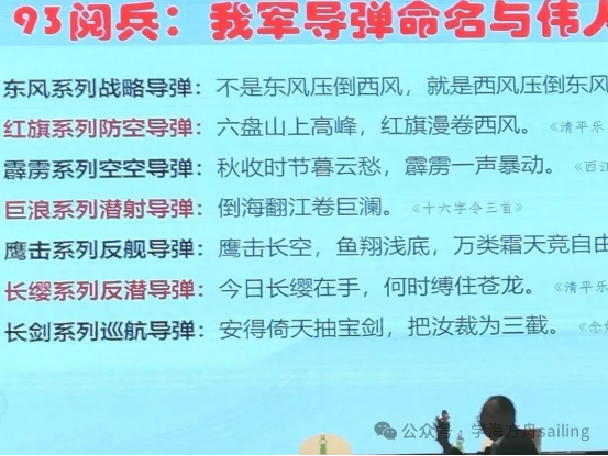 讲到今年9月3日的阅兵,他说阅兵目的是强军实力,彰显的是大国安全底气。武器装备的迭代升级是强军建设的直观注脚,在此次阅兵中,45个方(梯)队展示的国产现役主战装备,勾勒出人民军队现代化建设的清晰轨迹。陆上作战群中,99B坦克以信息赋能实现重火精准打击,100系列战车凭借高智能化提升协同作战能力;海上作战群里,舰载激光武器化作“光之利刃”,构筑起海战攻防新屏障;空中梯队中,歼—20系列与歼—35A隐身战机编队振翅,标志着我国歼击机家族完成代际跨越。更令人振奋的是,装备陆基东风—61、海基巨浪—3、空基“惊雷—1”首次集中亮相,完整展现了“三位一体”战略核力量体系,而东风—5C洲际导弹的全球覆盖能力,更成为守护国家主权的“压舱石”。从抗战时期的土枪土炮到如今的智能装备,装备体系的历史性跨越,印证了“强国必须强军,军强才能国安”的深刻真理。