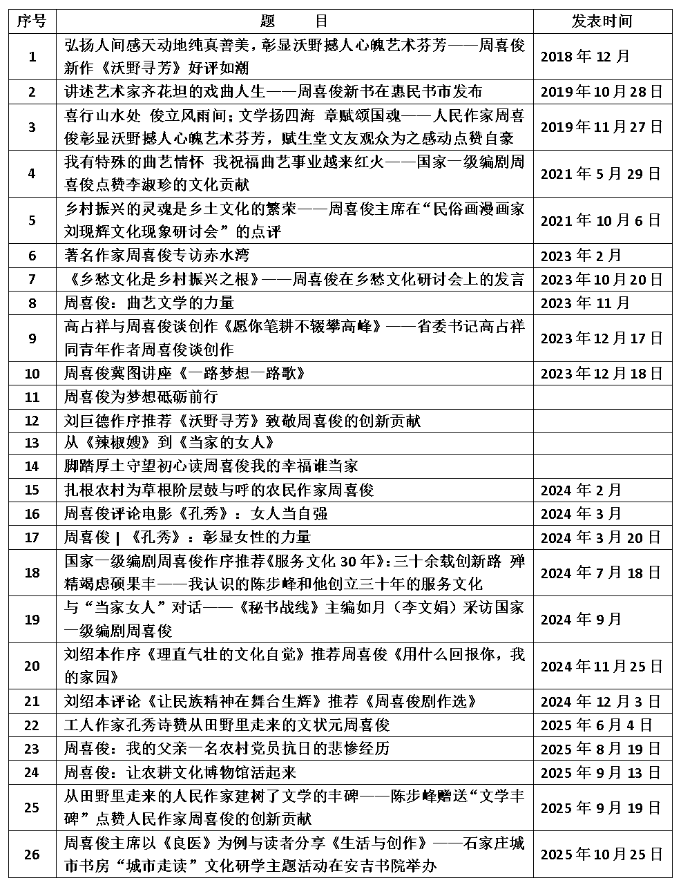 5、周喜俊敢于创作与时代热点高度契合的重大题材,是站位高远睿智创新、有浓厚家国情怀有担当贡献的作家。