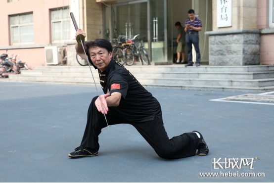 一身功夫服,中等身材,腰板挺直,儒雅俊秀,似有仙风道骨。他目光清朗澄澈,神态慈祥和蔼,步履轻盈飘逸,讲话语气饱满谦和,表情端庄严肃。“武术是中华民族的文化遗产更是人类的共同财富,我们应该把它传承下去,并且发扬光大。”这是丁新民挂在嘴边的的一句话。