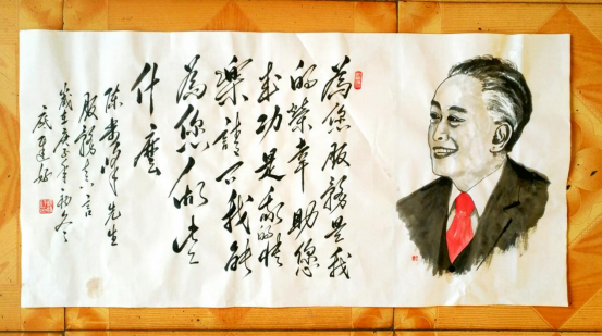 我和他结识于2016年革命圣地西柏坡纪念馆。在一个具有数百人参加的文化活动上,我作为特邀嘉宾在台上做了十分钟的激情演讲,会场反响强烈。会后他专门找到我,紧紧握着我的手激动地说:“我好久没有听到这样扬正气接地气的演讲了,您讲到心里去了,讲的我心里热乎乎的,讲的我热血沸腾,我要更好的创作毛体书画。为歌颂共产党、歌颂毛主席,传播传承毛泽东思想多做贡献。”