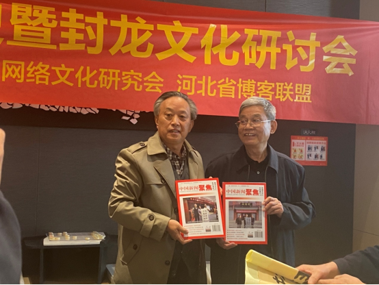 (河北省政府参事室研究员、中国服务文化网总服务师陈步峰向赵明信先生赠送了“家国情怀”,和《西河神韵服务文化》《年画文化乡村振兴》杂志,并用京东大鼓形式演唱了诗人鲁荣琴的诗作。陈步峰先生在会上分享了《强化文化自信自觉为石家庄正名提气》——陈步峰喜读赵明信先生撰著的《石家庄30万年——悠久厚重的历史文化》已经辑录在《杂技英豪民艺重生》杂志)