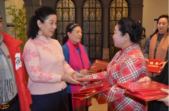 再次被聘为联谊会顾问的中国企业文化研究会研究员陈步峰与国学专家李宝臣给与会领导文友敬赠专著。