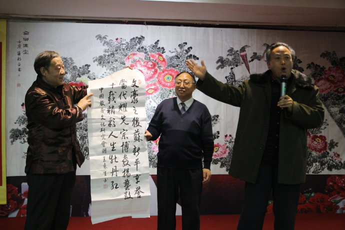 苏新平先生是我十分敬重的书画家,他不仅书画皆能,而且为人谦和静气厚道,积极参与我组织策划的各种文化公益活动,虽然颇有资历业务繁忙,但却能做到召之即来,来之能战,战之则生辉,为文化强国和文化强省助力添彩、献策献宝。在我们组织的“偏偏就爱石家庄歌曲研讨会”“咱们河北好地方歌曲报会”“吾行道自然健康研讨会”“打造旅游文化品牌研讨会”“全国农民书画大赛”“以及南开学子联谊会”等文化公益活动中,都能看到他挥毫泼墨的身影和创作奉献的一幅幅佳作。前年,杨则冉将军回归故里书法展在宗圣故里山东嘉祥县举办,苏新平不顾长途奔波旅途劳累,在书展现场连夜挥毫创作“龙马精神”“金戈铁马”的佳作,成为书展现场的一大文化亮点,为老将军给故里和文化圣地送文化的义举和齐鲁文化与燕赵文化的融合增光添彩,第二天参加完书展仪式,随即赶往北京参加中外文化交流会议。他已经由“牡丹苏象形书法泰斗”转型成为乐此不疲的“文化使者”和人们喜爱的“文化宝贝”。为此我曾撰文《书画皆能深造诣,象形泰斗苏新平》,发表后引起强烈反响。今年我们又特意组织了《热烈祝贺苏新平先生从教从文46周年报告联谊会》,从各地赶来的200余名专家企业家书画家艺术家纷纷称赞苏新平先生的文化贡献。