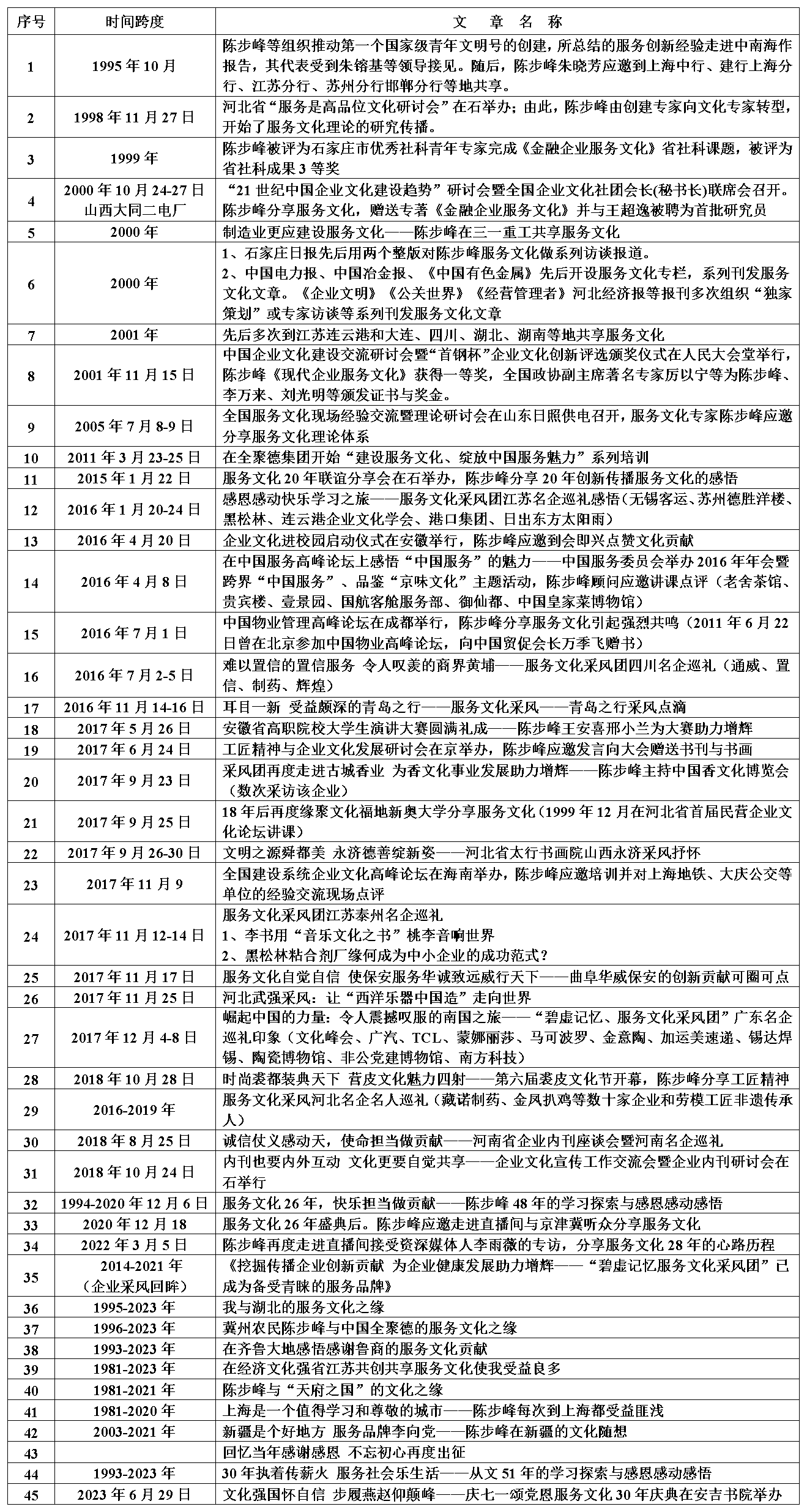 中国服务文化网、碧虚网、文化与传承等媒体刊发,并收录在《服务文化决胜未来》《现代企业服务》《服务力为王》《成败大扫描——服务文化案例启示录》等服务文化专著。