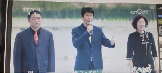 (陈平与央视主持人张喆互动,分享多次参加央视票友活动的收获)