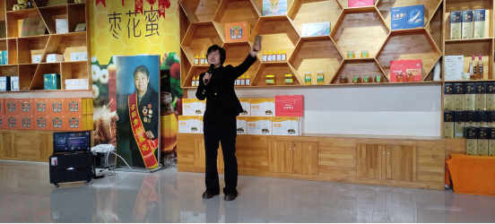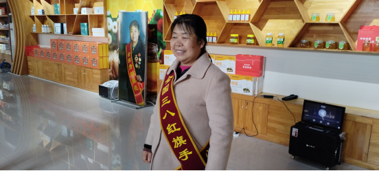 在大家热烈的掌声中,身披“全国三八红旗手”(是全国专项表彰妇女先进人物的最高荣誉)绶带的全国劳模、河北蕊源蜂业董事长陈秀英向大家鞠躬致谢,发表获奖感言。表示要不忘初心牢记使命,团结带领太行老区的蜂农们为实施乡村振兴战略,建设和美太行作出新的贡献。